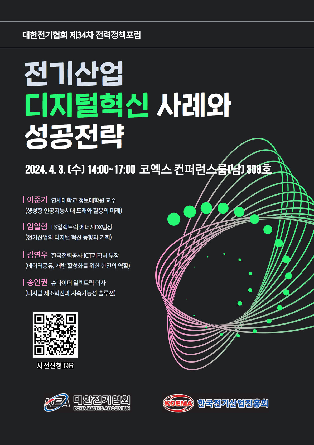 안녕하십니까. 우리 협회는 한국전기산업진흥회와 공동으로 제34차 전력정책포럼을 개최합니다.