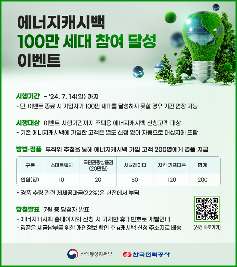 [이벤트] 에너지캐시백 100만 세대 참여 달성 이벤트 안내