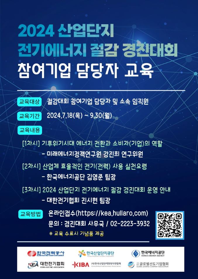 1. 교 육 명 : 2024 산업단지 전기에너지 절감 경진대회 담당자 교육