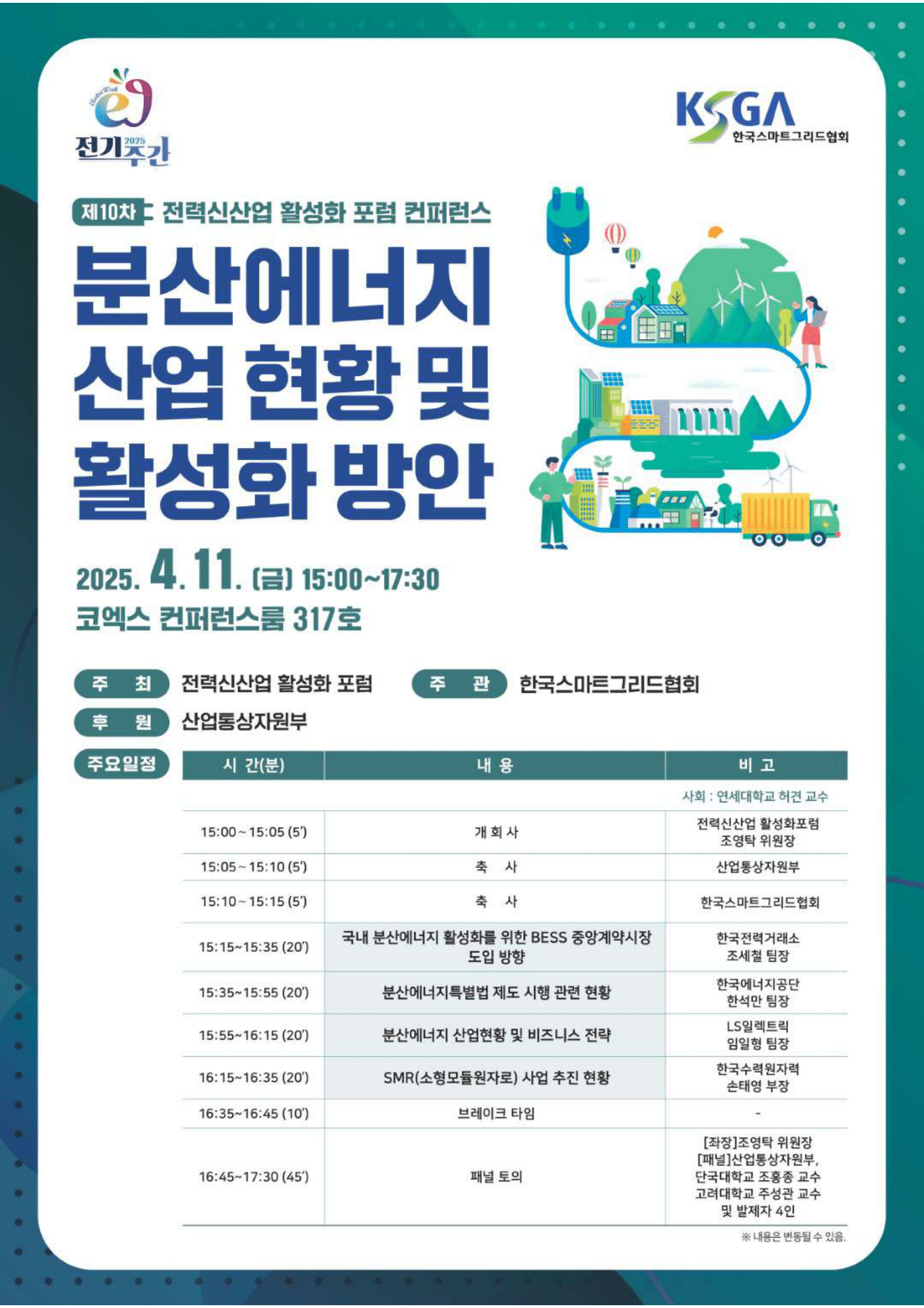 제10차 전력신산업 활성화 포럼 컨퍼런스 개최 안내(4월 11일)