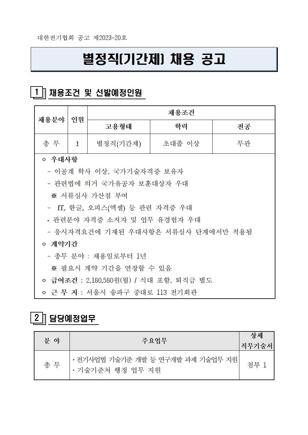 2023-20 : [채용공고] 별정직(기간제) 채용 공고