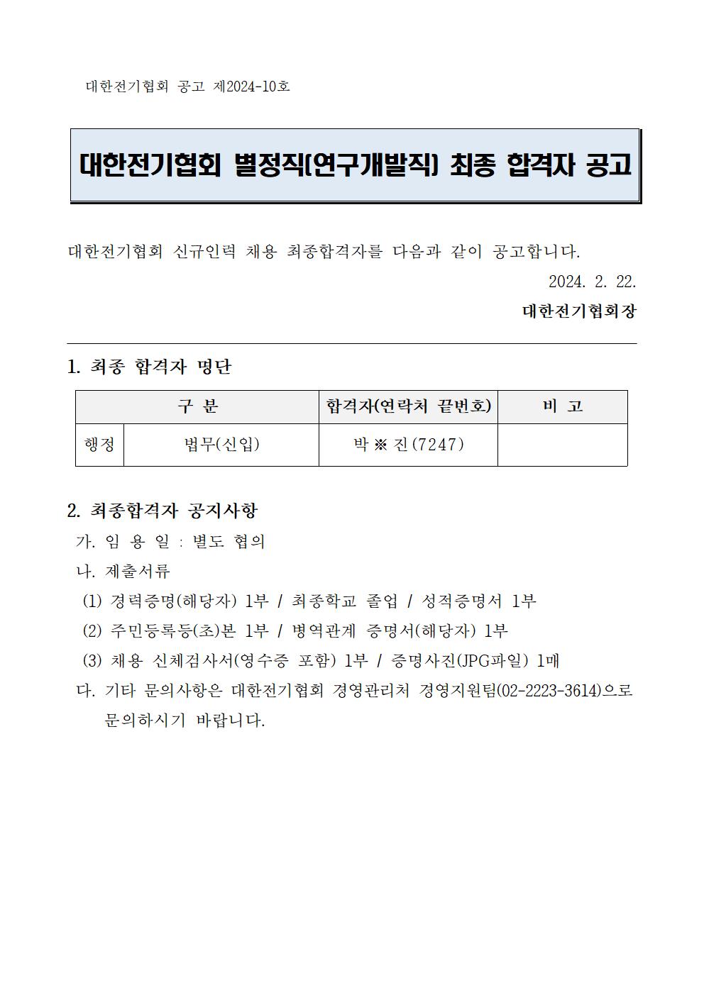 2024-10 : [최종합격자 공고] 별정직(연구개발직)